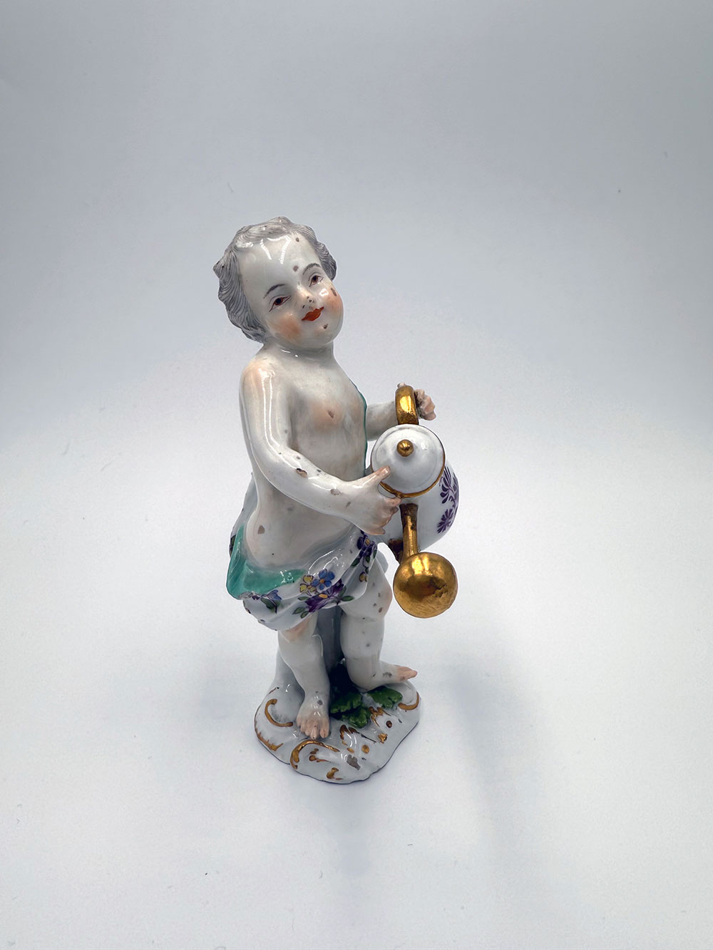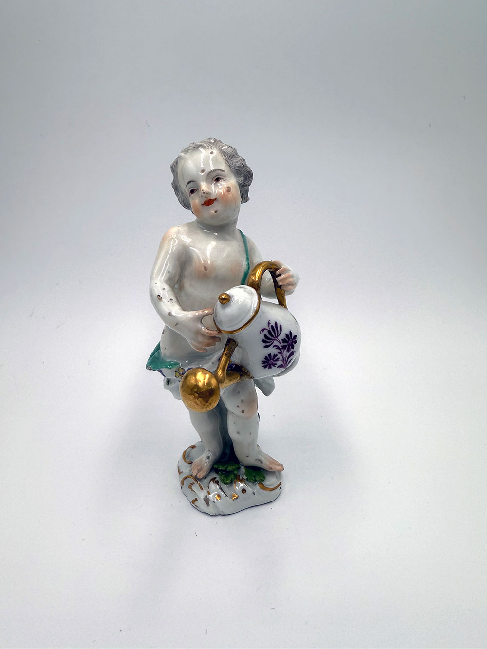 Figurka chłopca- ogrodnika wykonana przez Miśnię w XVIII wieku. Bardzo dobrze wymodelowa i pomalowana z wieloma ładnymi szczegółami.