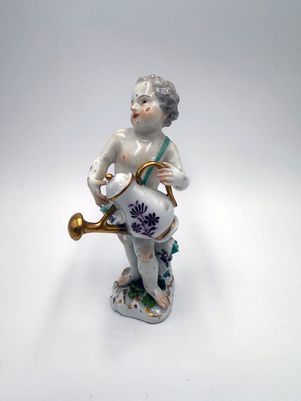 Figurka chłopca- ogrodnika wykonana przez Miśnię w XVIII wieku. Bardzo dobrze wymodelowa i pomalowana z wieloma ładnymi szczegółami.